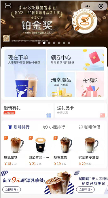 要么是像瑞幸一樣,首頁(yè)空間里盡可能多的放進(jìn)更多內(nèi)容,充分利用首頁(yè)承接“用戶第一眼”的優(yōu)勢(shì)。